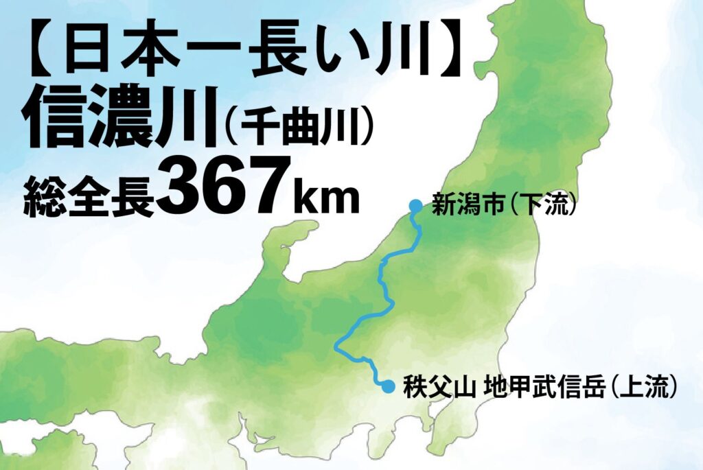 千曲川の源流は、長野県と山梨県の県境にある甲武信ヶ岳(こぶしがたけ)で、長野県内を流れ、新潟県境を越えると信濃川と名前を変える大きな川です。