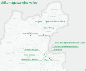 長野県の北東部に位置し、長さ約100kmに及ぶ千曲川の上流から下流に広がる大きなワインバレー。