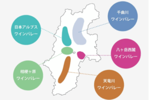 長野ワインは、気候に合わせて5つのエリアに大きく分類されています。